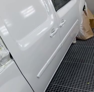 Au programme, débosselage, restructuration de la carrosserie et enfin peinture pour une remise en forme esthétique réussie.
